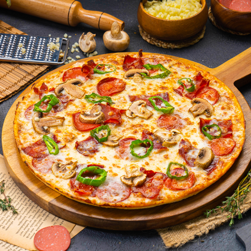 Mozzarella Peyniri, Pizza Sosu, Sucuk, Pastırma, Yeşil Biber, Mantar